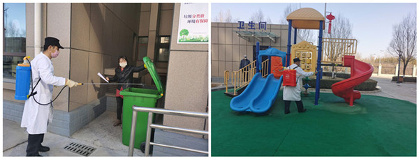 小區(qū)門口圍起了鐵欄桿,物業(yè)人員全方位噴灑消毒液。我們能堅持做到對小區(qū)入口、樓宇門、電梯間、垃圾桶一日兩次84消毒、樓宇把手、電梯按鍵、門鎖按鍵健身器材、游樂場兩次酒精清潔, 制定因地制宜的“封閉式管理”模式,并根據(jù)需要為業(yè)主提供代購生活物資等服務,盡最大努力隔絕病毒傳播的可能性。